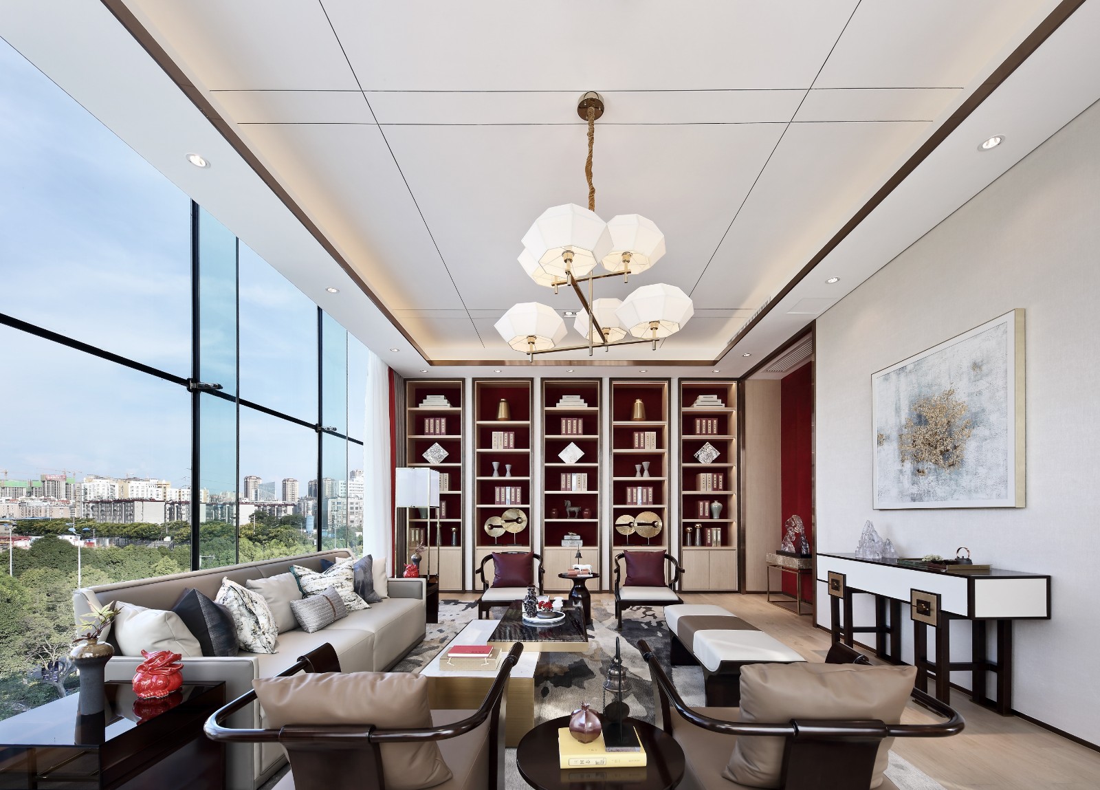 整体空间动线清晰简单,无多余的拐弯抹角。以核心区域的展厅为中心点,四周是VIP接待与文化休闲走廊,对称与工整,正如智者般内心的严谨、清晰的条理、理性的节奏,这都是这个空间它内在的秩序与章法。不张扬,不轻浮,不沉不喧。装饰材料素中带奢,这是对当下时代与传统中式人文的尊重。