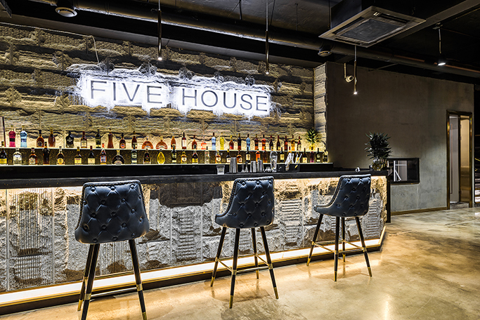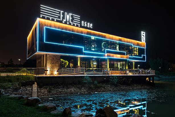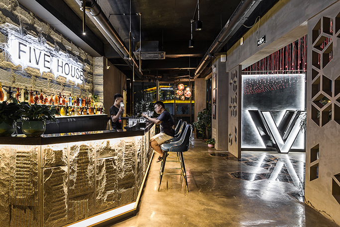 Five House酒吧位于长治市淮海公园湖边,原场地为一栋两层独栋建筑。根据委托方的要求以及对酒吧周围环境的分析,我们将空间氛围由静到闹分为六种:安静的卡座区、轻松的休闲区、分享性吧台、热闹的KTV、熙攘的吧台、躁动的闹吧。在实体空间进行穿插,形成连贯有序的空间形态。
