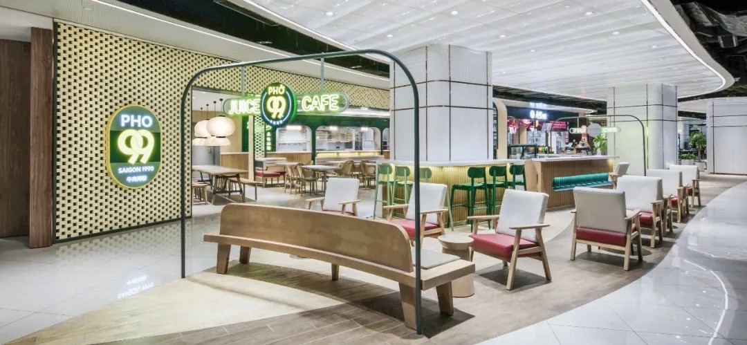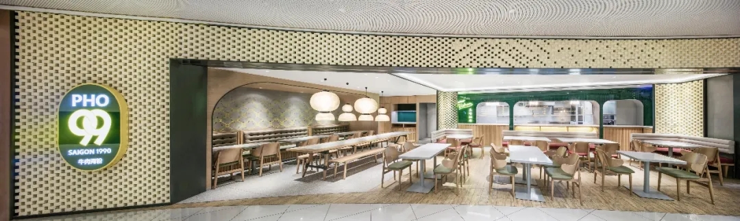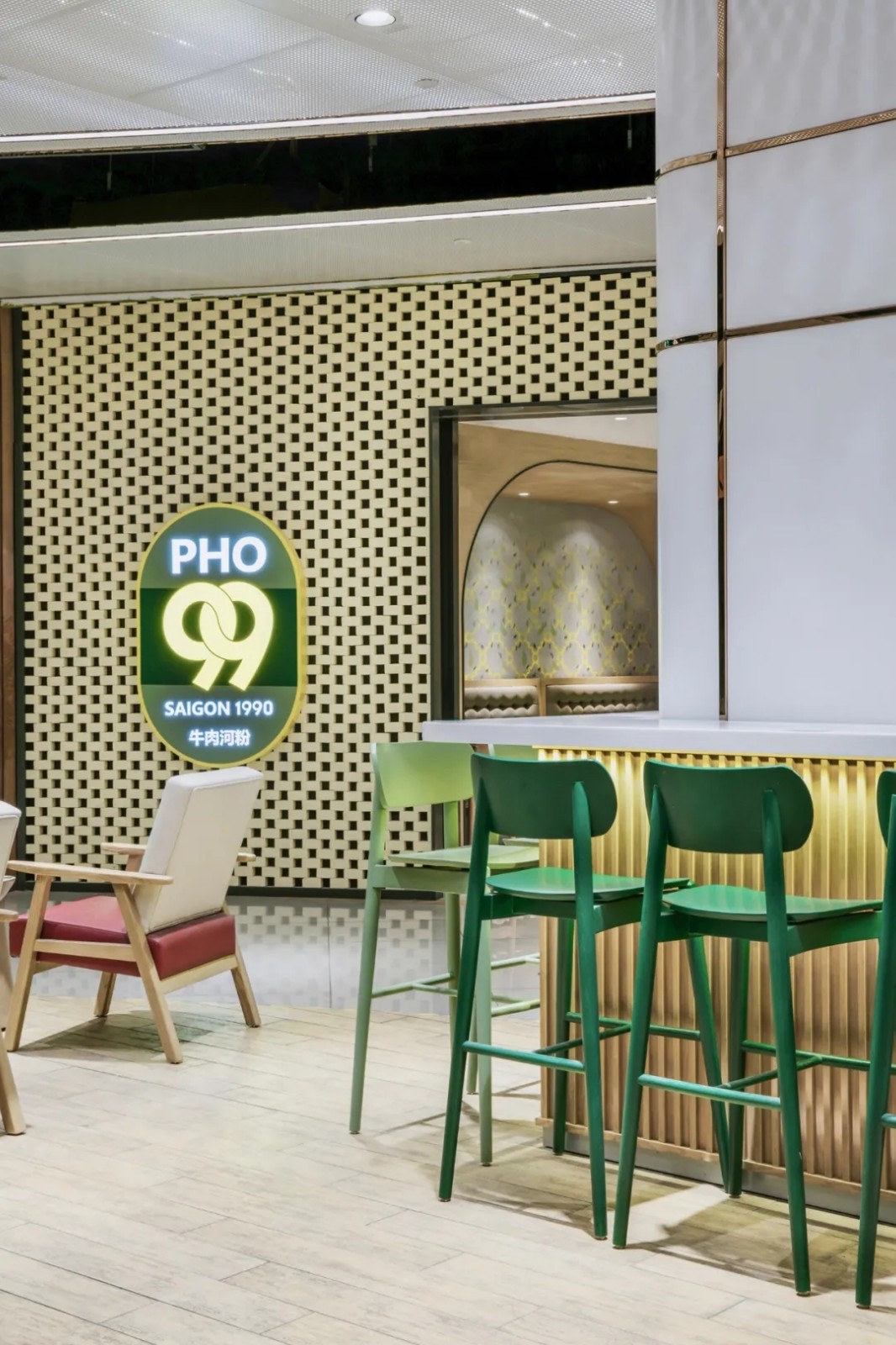 PHO99拥有一众忠实消费群体,对于扩张的新店设计,需要在时尚潮流的表达之中,创造具备越南元素的记忆点,以现代化的设计手法提炼,为空间转化塑造出具有越南老街风情、记忆感,风格独特的用餐氛围,营造真实的越南尘世街景。