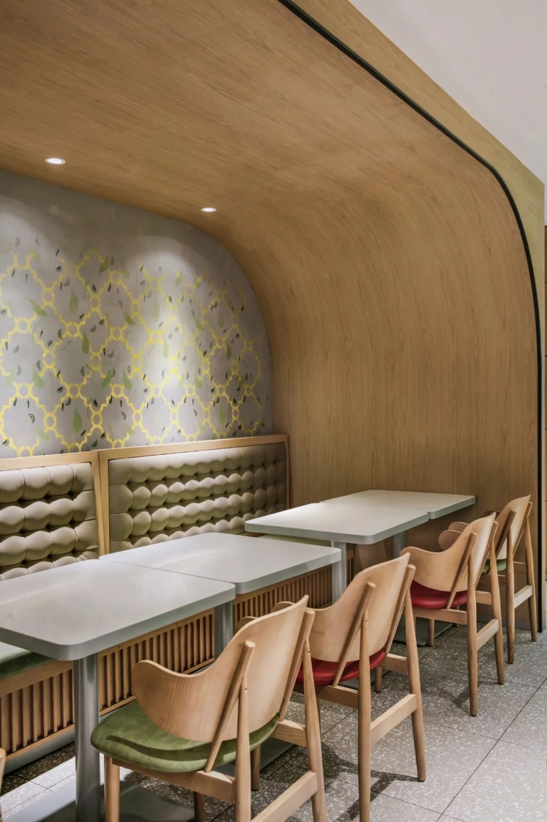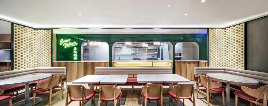 拱形的轮廓、弧度,应用到橱窗口、卡座区域,在方正的空间里,开辟新的建筑廓形,呼应越南老街充满特色的建筑符号,以建筑之形,应越南街景。