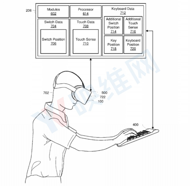 美国专利商标局日前又公布了一份与物理键盘文本键入相关的Facebook专利。这家公司主要描述了用于表示用户与真实世界输入设备进行交互的系统和方法。具体来说,专利描述的系统可以在头显用户与物理键盘交互时提供相应的视觉反馈。