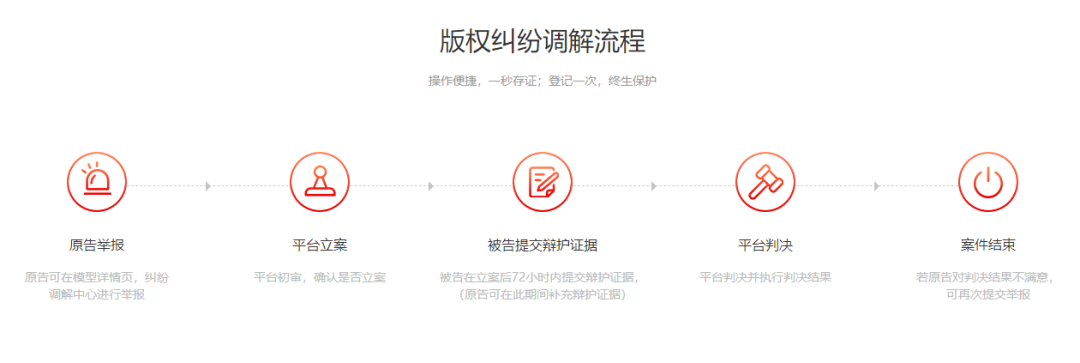 在提供版权登记服务同时,我们更注重构建网站良好的模型素材交易市场,以“公平公正公开”的判定原则,为原创人提供一个版权申诉的有效渠道!