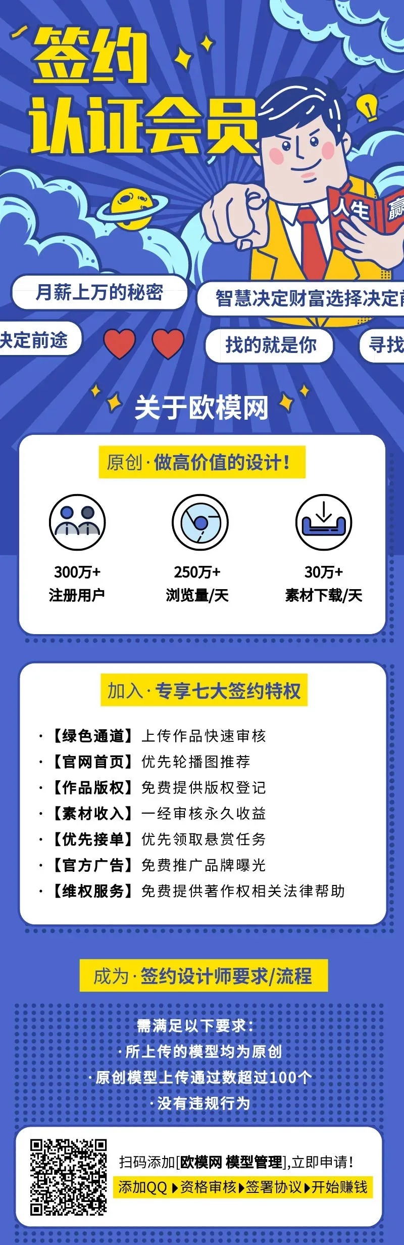 原创签约认证服务,是欧模网为原创上传作者免费提供的身份认证服务。