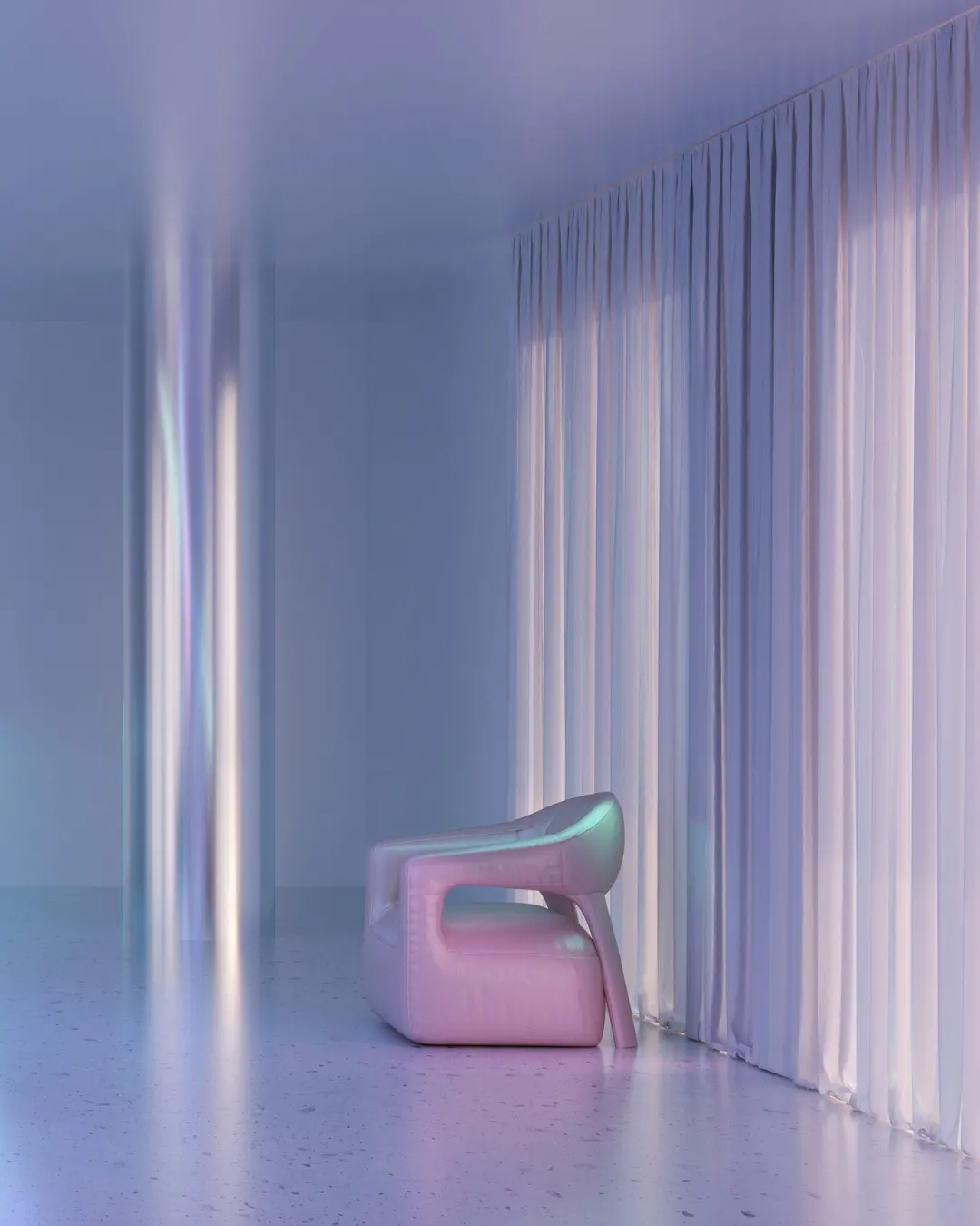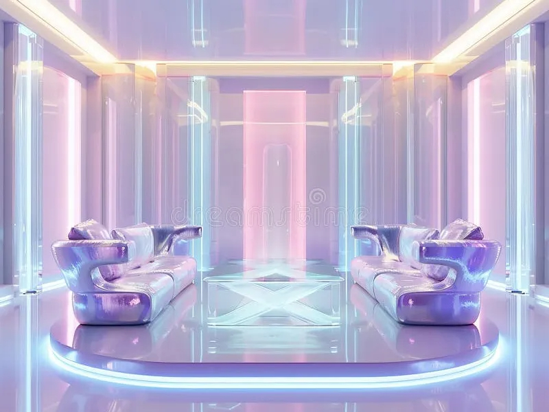 Extra Celestial风格带有明显的未来科技气息,通过金属材质、冷色调和光带设计营造未来空间。
