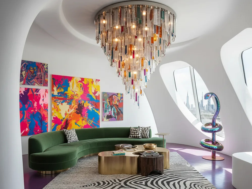 FunHaus是一种充满表现力和戏剧张力的设计风格,通过高饱和色彩、夸张家具和图案叠加打造充满活力的空间。