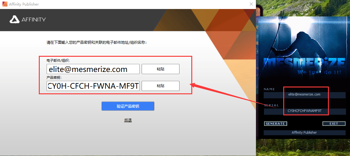 阿静注册机生成的产品密钥复制到软件页面,点击验证产品密钥~