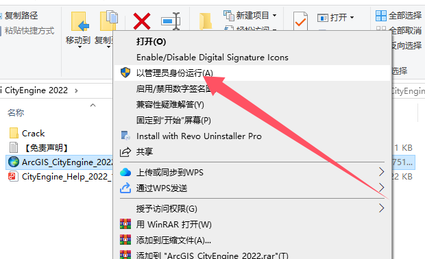 选择“ArcGIS_CityEngine_2022.exe”鼠标右键以管理员身份运行