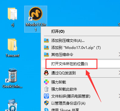 在电脑桌面找到Modo17.0v1软件鼠标右键打开文件所在的位置进去安装目录位置