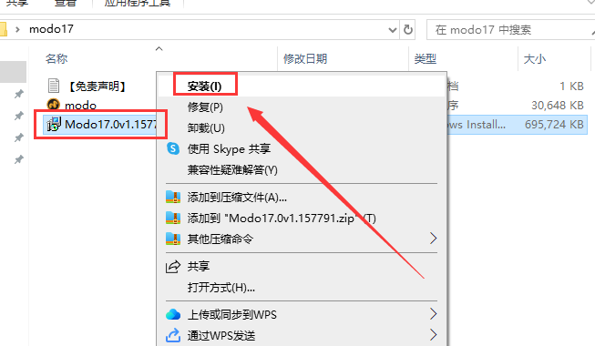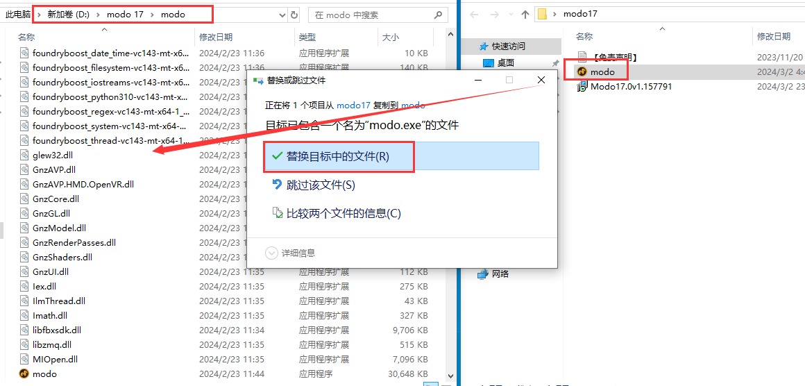 将安装包的破解补丁modo复制到刚才打开的安装目录位置下替换