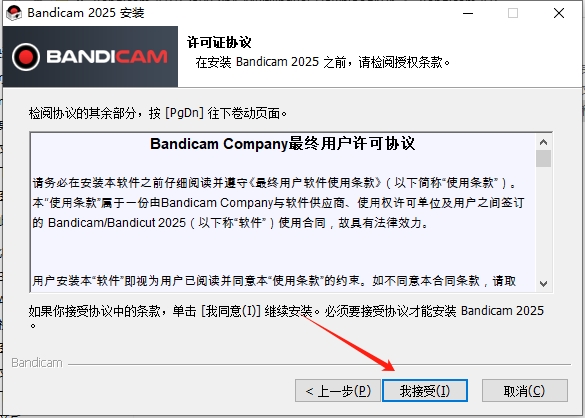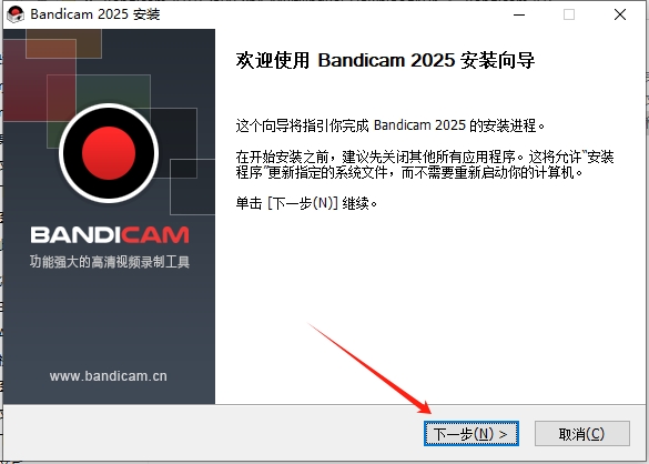 欢迎使用Bandicam安装向导,直接点击下一步