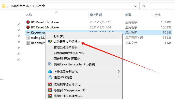 选择Keygen.exe鼠标右键以管理员身份运行