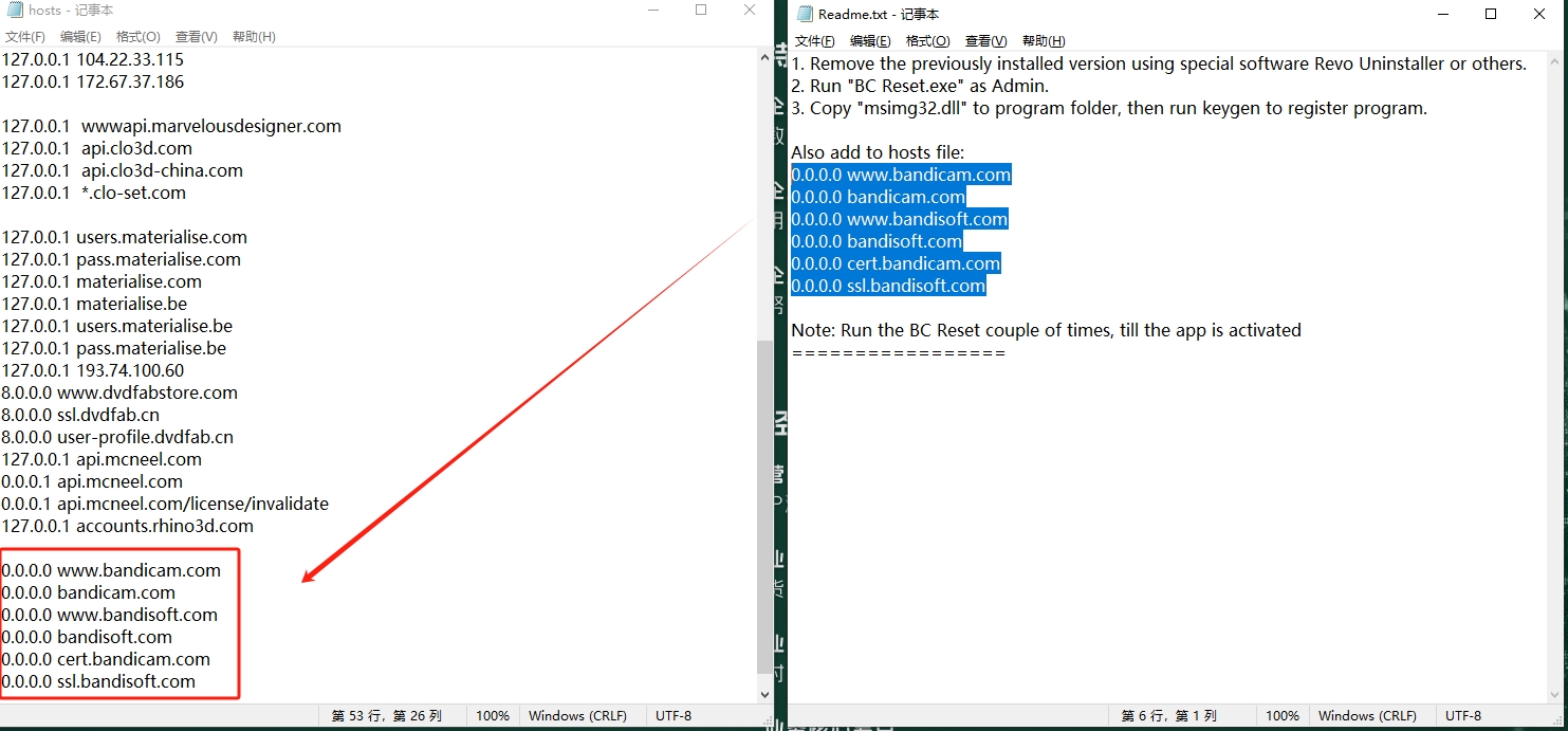 打开Readme.txt文本,将里面的屏蔽内容复制到刚才打开的hosts文本里面。然后保存一下文本