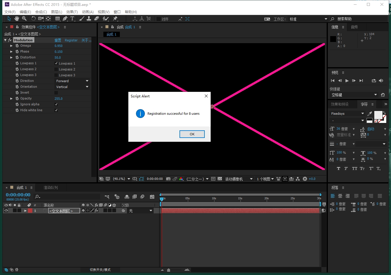 将modulation.aex复制到Plug-ins文件夹下