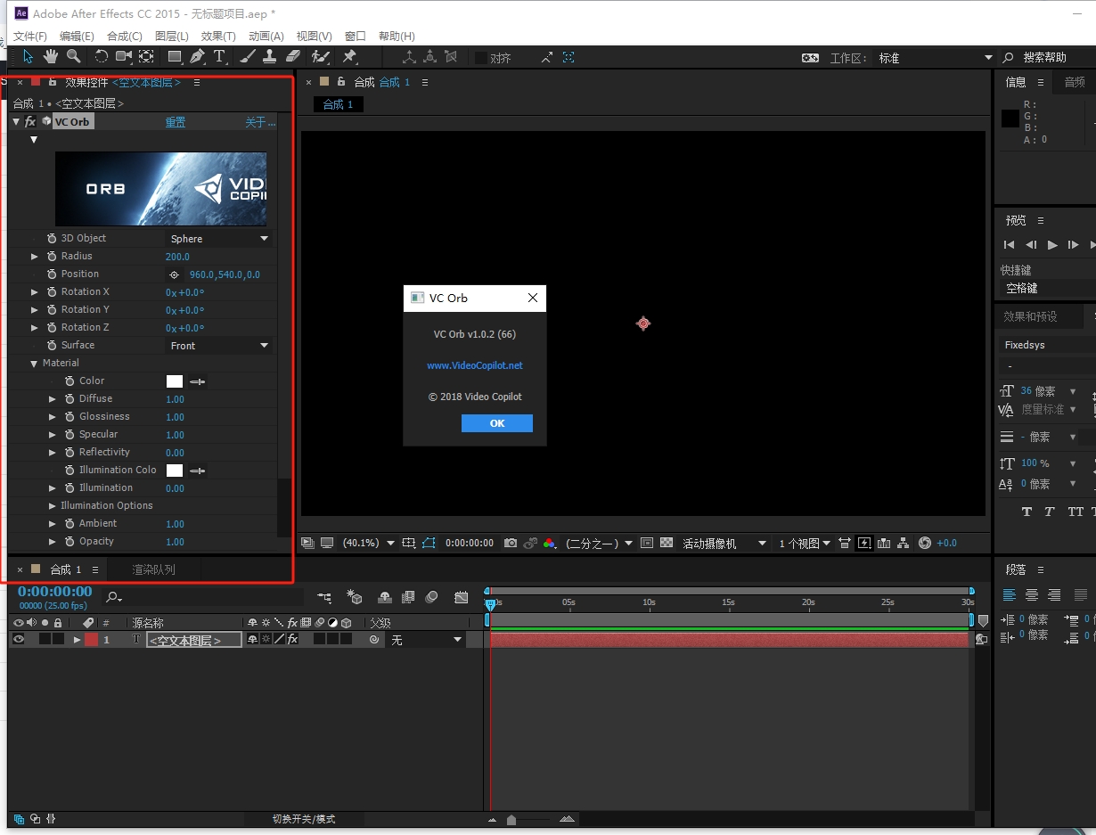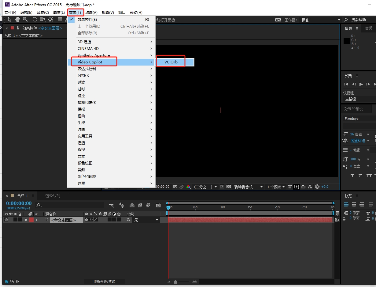 打开AE,新建合成,点击效果-Video Copilot -VC Orb