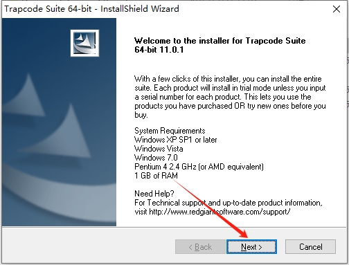 选择AE版本,本插件仅支持AE/PR CS 5-5.5版本,大家自行根据自己的版本进行选择,这里我们就勾选Trapcode Suite for After Effects CS5,然后Next