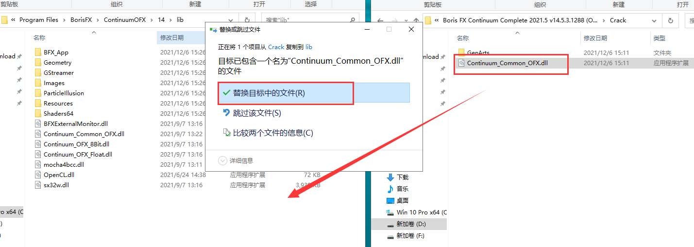 打开安装目录:C:\Program Files\BorisFX\ContinuumOFX\14\lib,然后将crack文件夹的Continuum_Common_OFX.dll复制粘贴到软件安装目录下替换就可以了