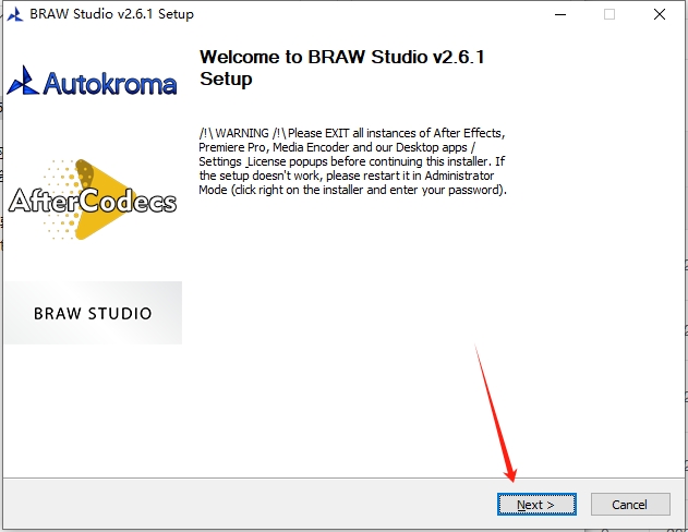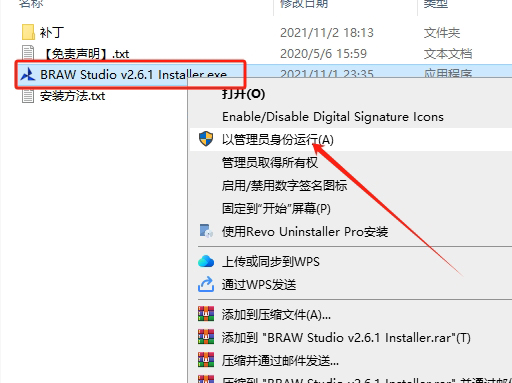 选择“BRAW Studio v2.6.1 Installer.exe”,鼠标右键以管理员身份运行