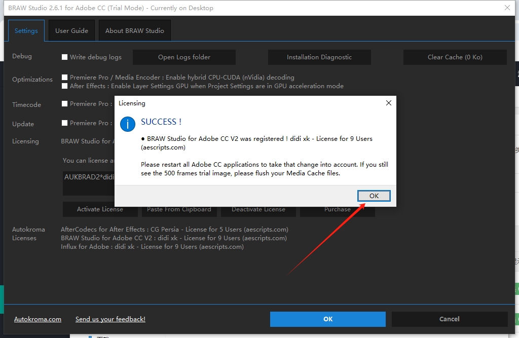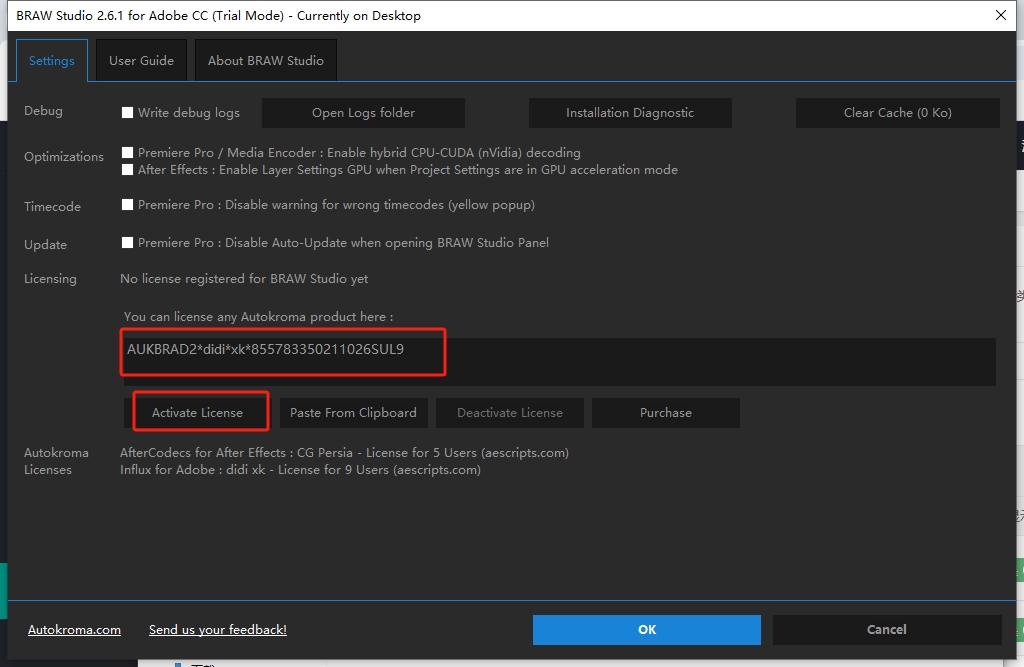 输入注册码:AUKBRAD2*didi*xk*855783350211026SUL9 然后点击Activate License