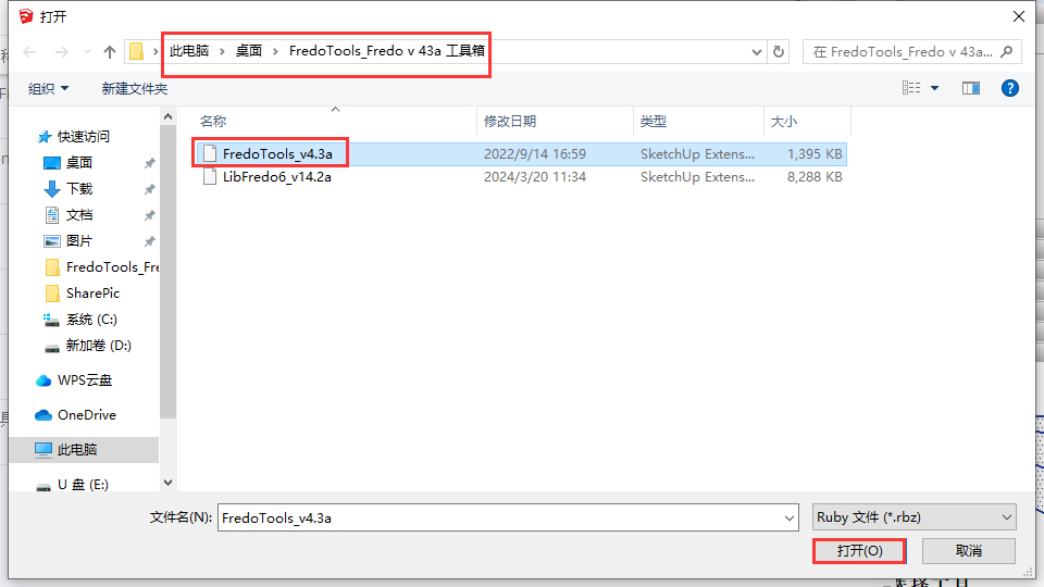 弹出对话框,意思是:脚本FredoTools已加载,但菜单只会在下次启动Sketchup时显示,点击确定,然后关闭草图大师