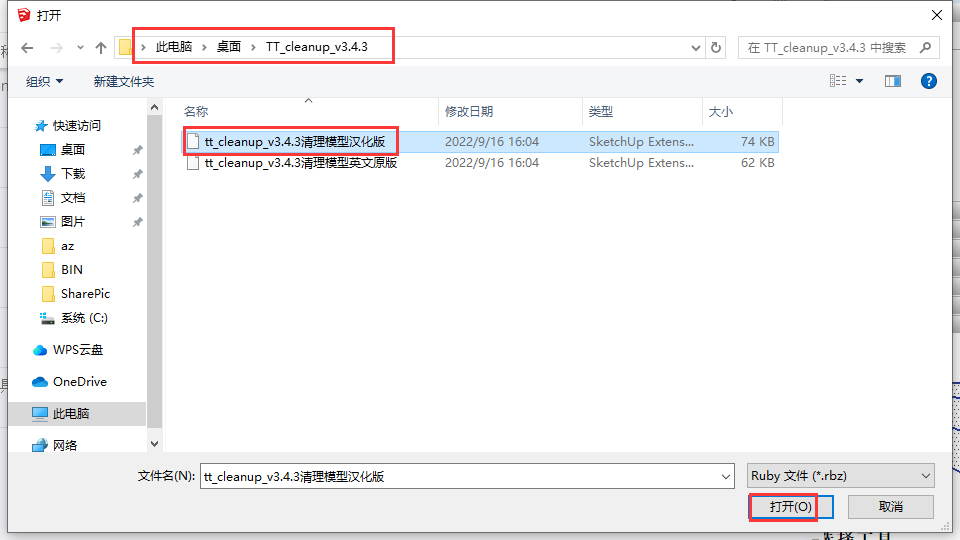 打开安装包里面的tt_cleanup_v3.4.3清理模型汉化版版插件