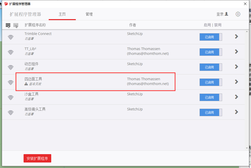 打开草图大师,点击【窗口】-【扩展程序管理器】