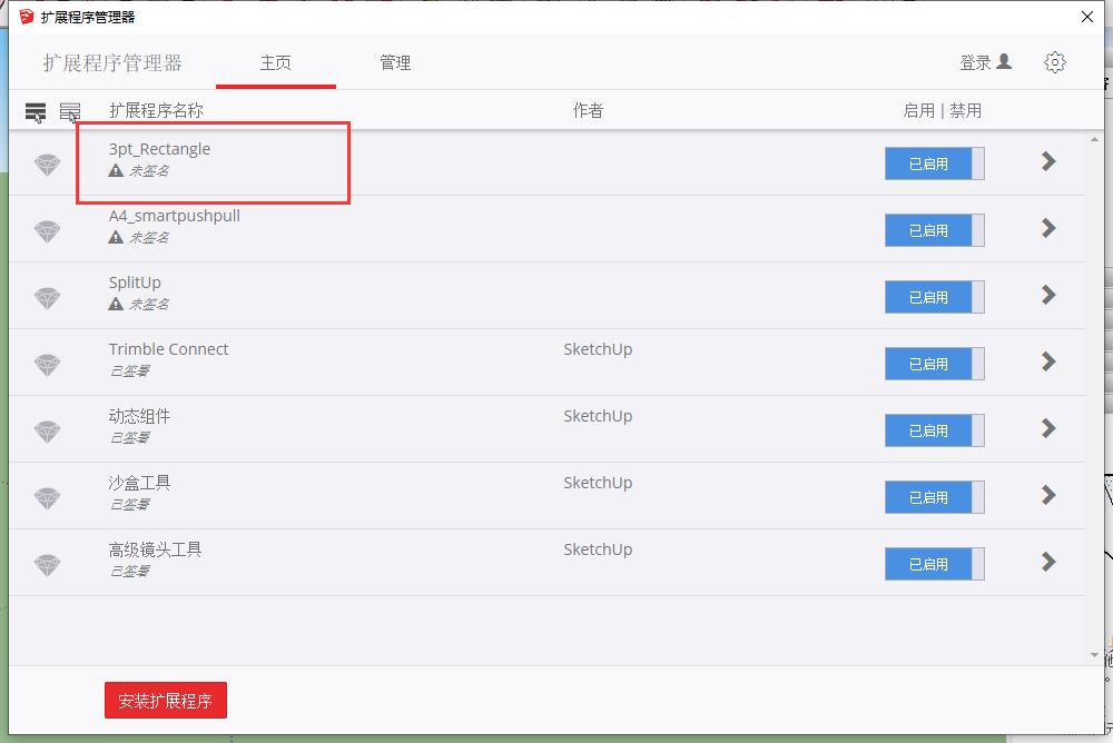 安装成功,此时在扩展程序栏里就有一个3pt_Rectangle插件啦