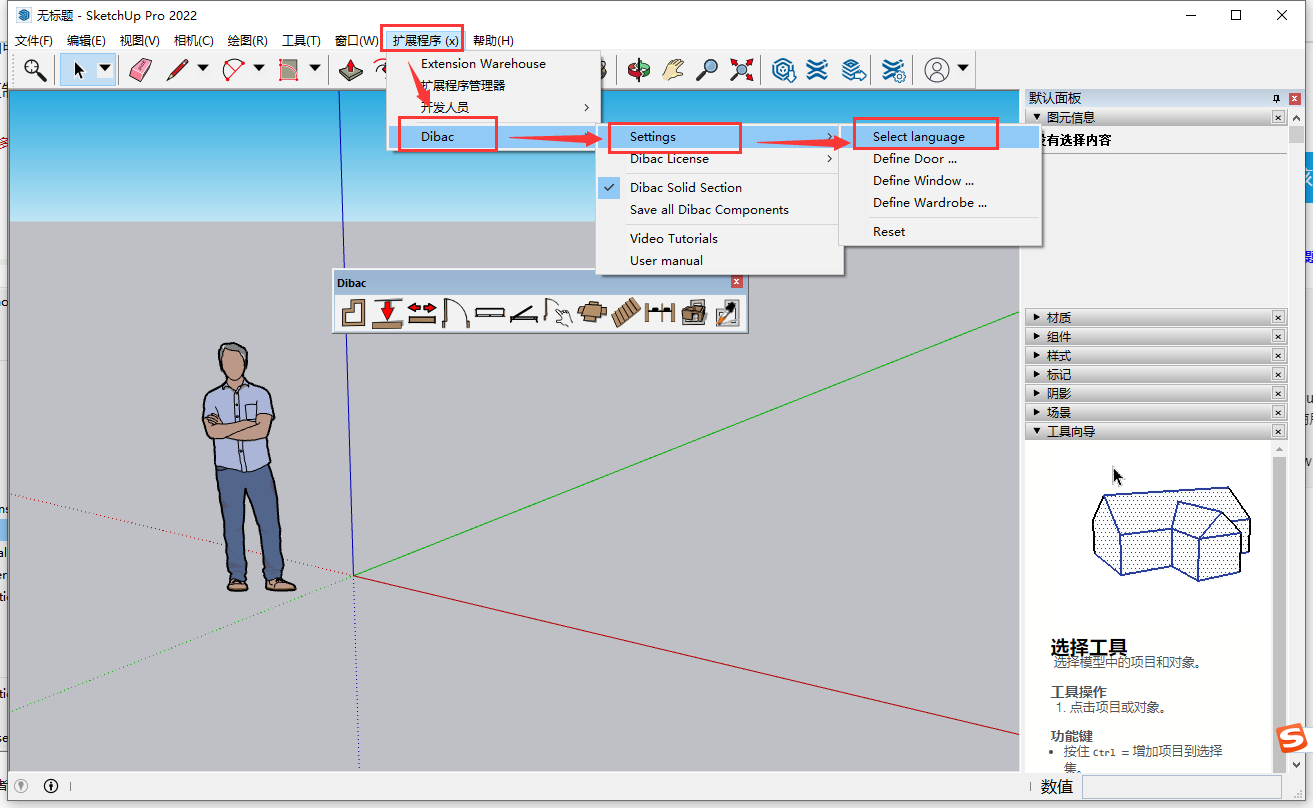 重新启动草图大师,此时Diabc插件就成功汉化了,可以开始使用~!