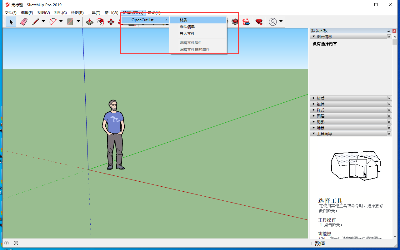 安装成功,然后在扩展程序里面就有一个OpenCutList的插件和一个功能图标了
