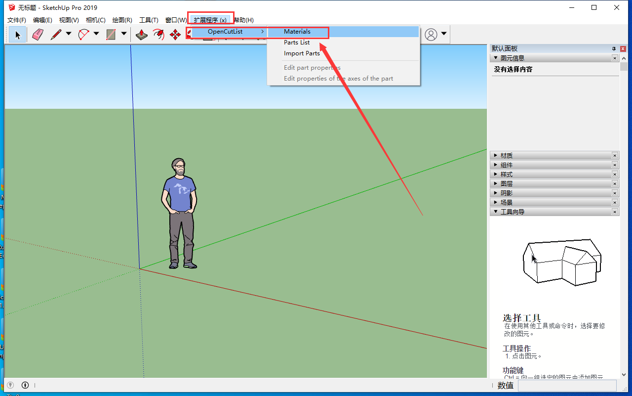 点击【扩展程序】【OpenCutList】【Materials】