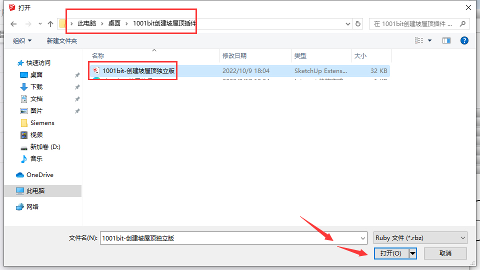 在弹出的对话框找到1001bit-创建坡屋顶插件安装包,选择【1001bit-创建坡屋顶独立版】打开