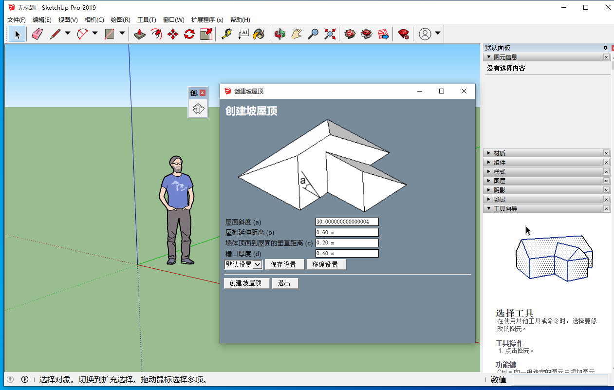 点击插件图标,就显示创建坡屋顶了,后面大家就可以根据自己的需求进行使用啦、