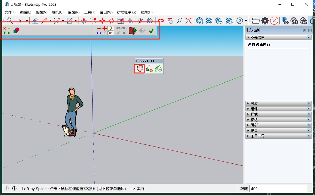 重启草图大师,然后就可以开始使用Curviloft v1.9a曲线放样插件啦