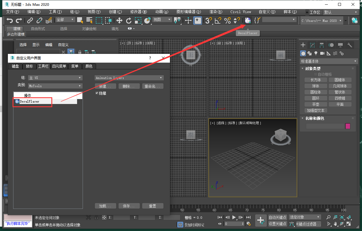 将插件拖动3dmax软件界面任意位置即可生成一个功能图标