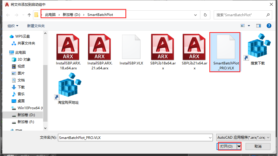 找到插件位置,选择“SmartBatchPlot PRO.VLX”,点击打开