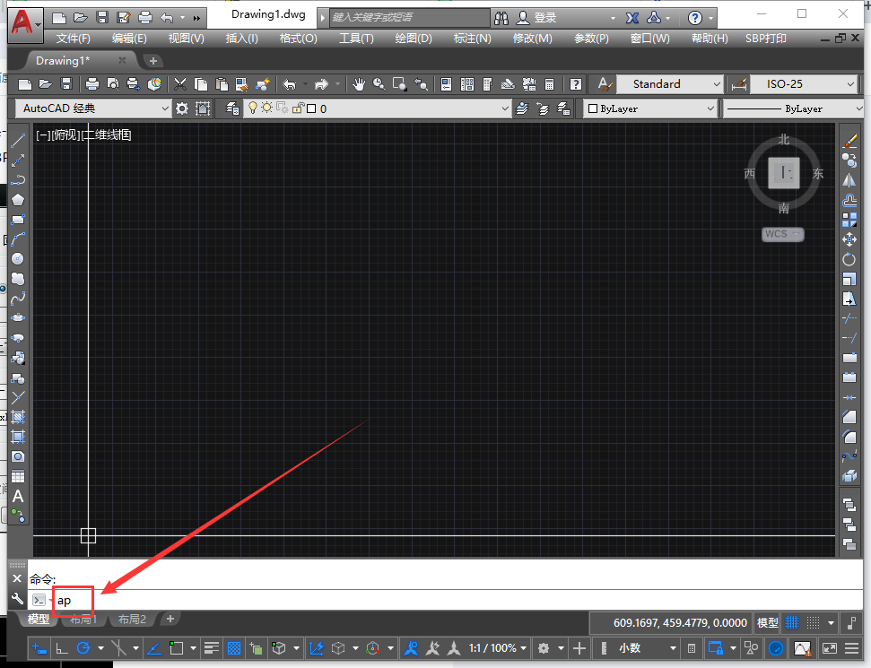 打开CAD软件,在命令栏输入:ap,然后回车