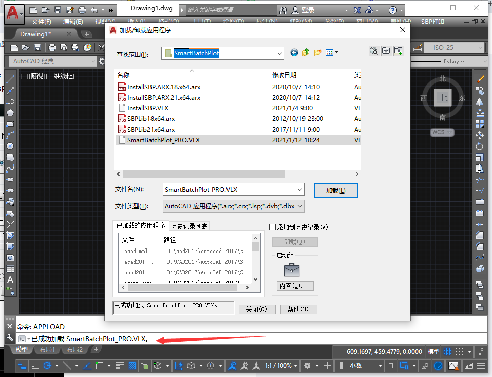 找到插件位置(步骤5更改的位置),选择“SmartBatchPlot PRO.VLX”,加载