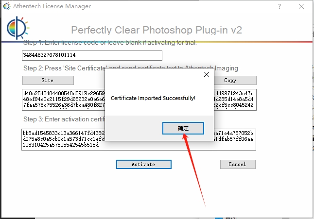 粘贴激活内容到插件界面对应框,然后点击Activate