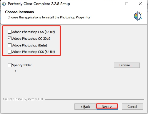 选择PS版本,根据自己的ps版本进行选择,不需要安装的取消勾选,然后Next