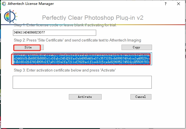 点击“Site”,生成许可证内容,将许可证内容复制一下