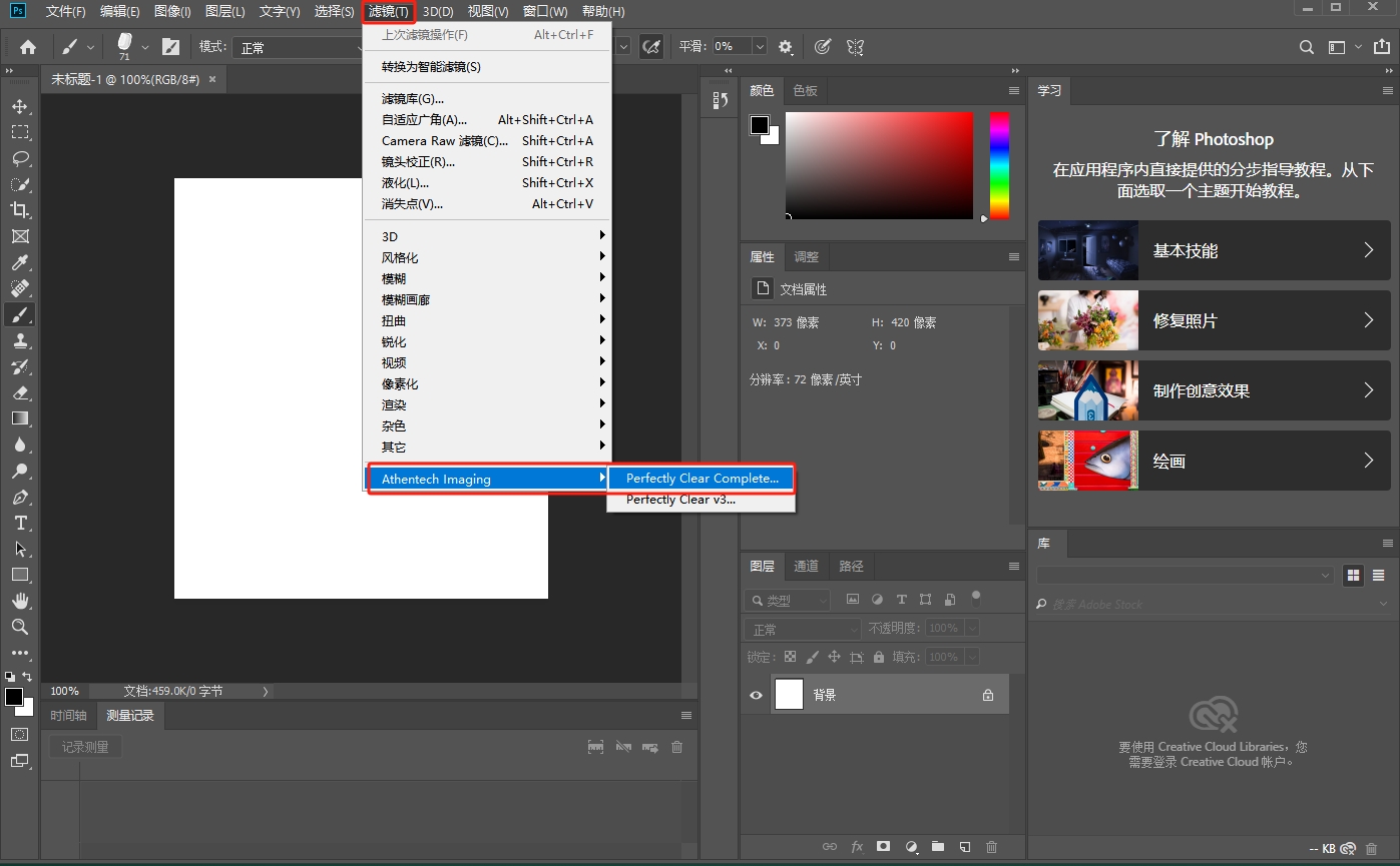打开ps软件,点击滤镜-Athentech lmaging -Perfectly clear Complete...