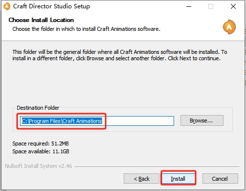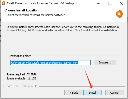选择Craft Director Studio v22.1.1安装位置,大家自行更改(注意:更改不能带有中文或特殊符号,同时记住本路径,后面用到),然后点击Intsall