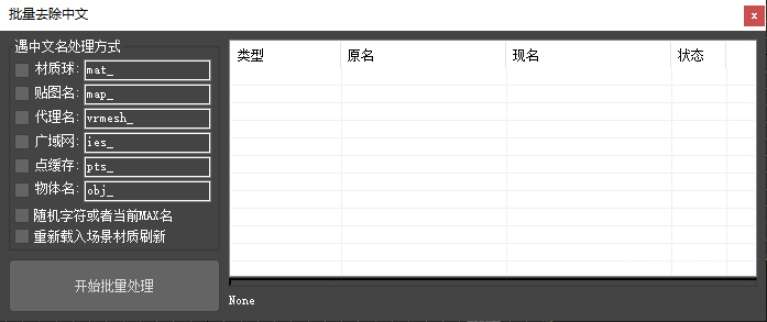 支持全局全部随机重命名(含模型,材质,贴图)。